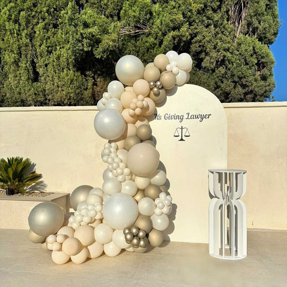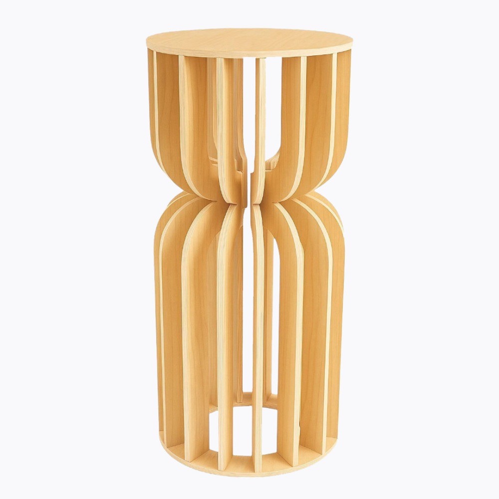 The Mirelle is a sculptural pedestal stand made from durable 12 mm plywood. Featuring a modern hourglass shape formed by 12, 16, or 24 curved slats, it adds height, structure, and style to balloon arrangements, backdrops, and event setups of all kinds.