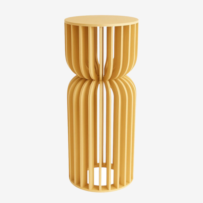 The Mirelle is an elegant pedestal stand crafted from sturdy 12 mm plywood. With its sleek hourglass silhouette built from 24 gracefully curved slats, it brings height, balance, and a refined touch to balloon décor, photo backdrops, and event styling of every kind.