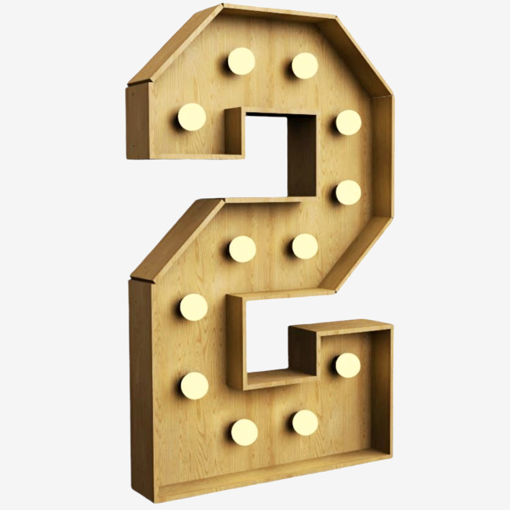 Marquee Number 2 - Wooden 3D Light-Up Digit