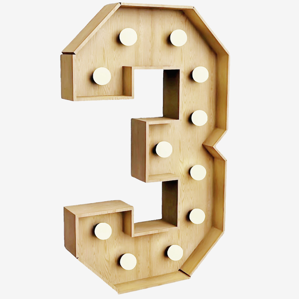 Marquee Number 3 - 3D Light Up Wooden Digit