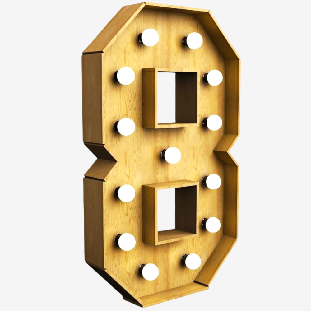 Marquee Number 8 - Wooden 3D Light-Up Digit
